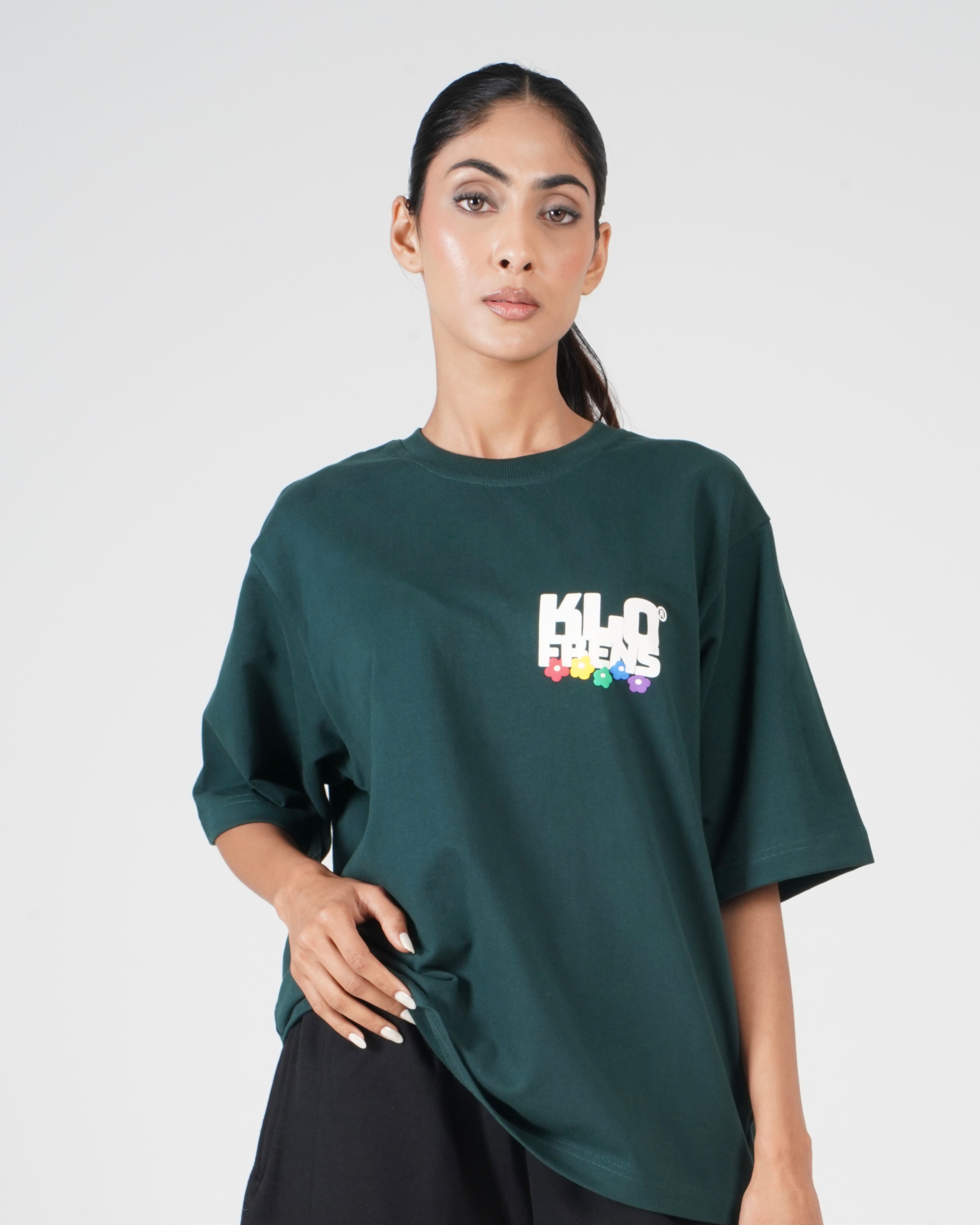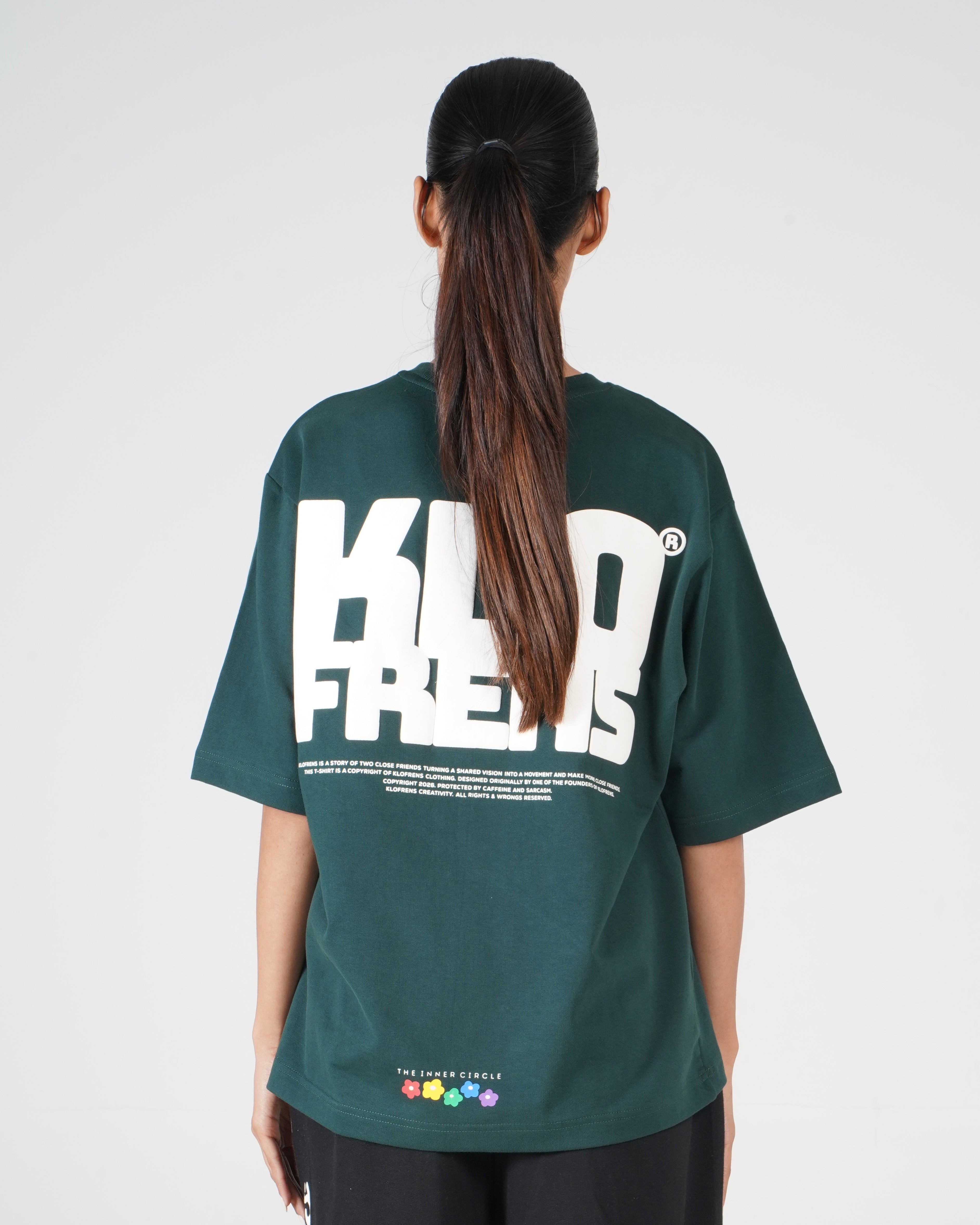 A bold statement piece, featuring the KLOFRENS logo in a clean off-white puff print. The front keeps it minimal with a compact chest logo accented by subtle multicolor flower detailing, while the back makes an impact with an oversized graphic. Simple, sharp, and street-ready — made for those who move as one.